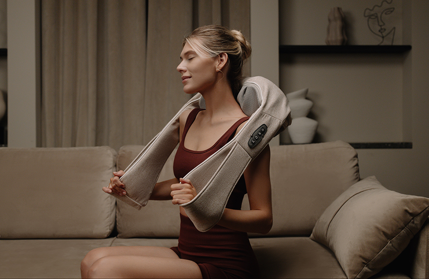 Use a massager to relax a tense neck and shoulders, upper and lower back.