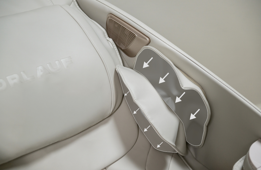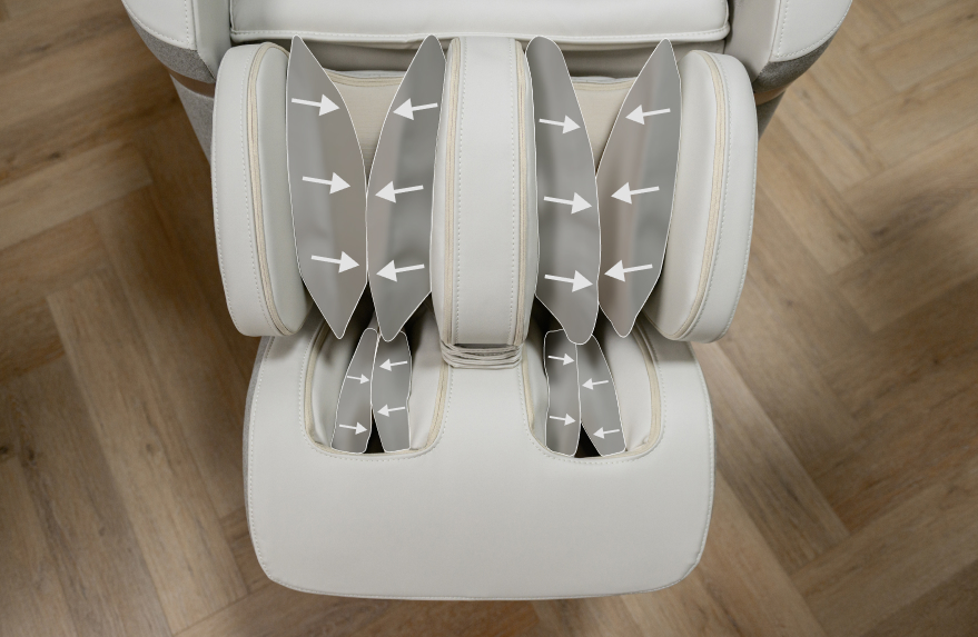 Thanks to this, air compression massage not only relaxes the muscles, but also actively removes excess fluid from the tissues, giving lightness throughout the body. And the synchronous operation of the pillows with rollers makes relaxation really deep and uniform throughout the body.