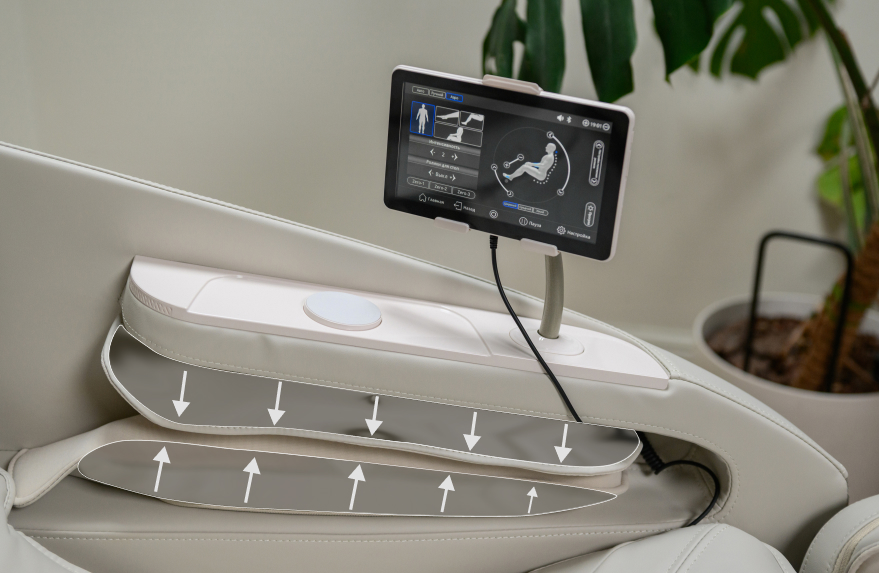 Before starting each session, the chair automatically scans your body, identifying height, spinal curves, and areas that require special attention. This allows the carriage to adjust as precisely as possible to the anatomy of a particular person.
