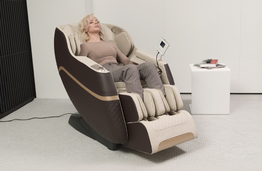 The massage chair is equipped with an extended SL-carriage length