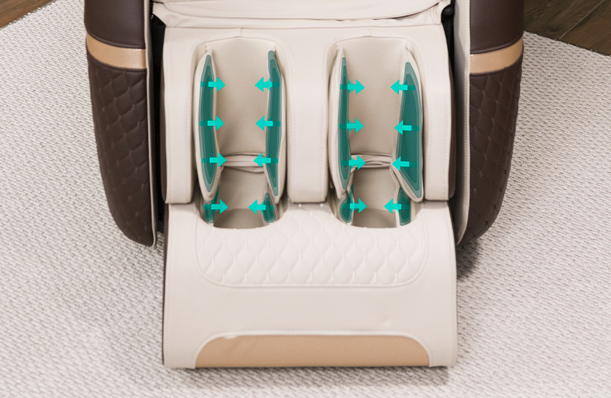 3D-The mechanism allows the rollers to move in three planes, and the four rollers in the back and the roller system in the feet guarantee a deep full-body massage. 34 pillows create a compression massage from the neck to the feet, improve blood circulation and have a lymphatic drainage effect.
