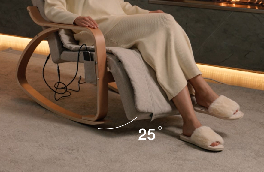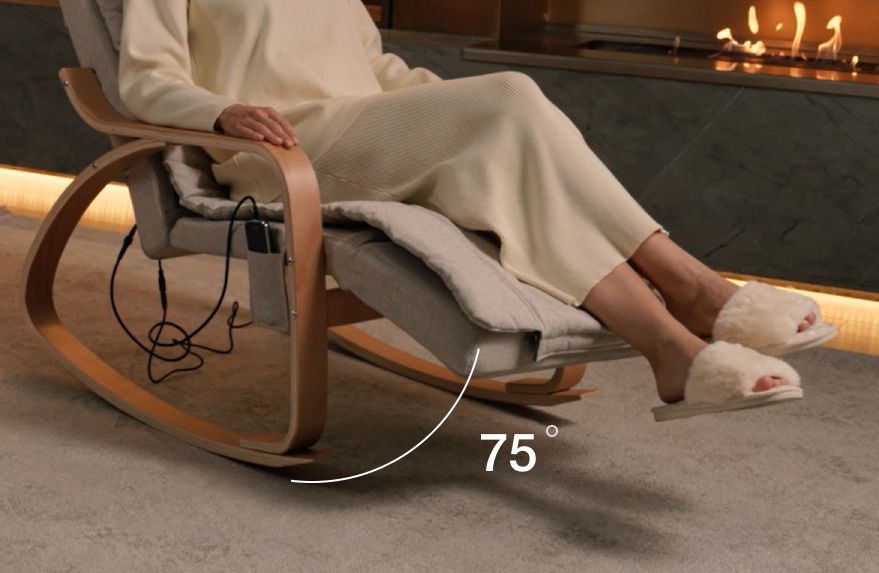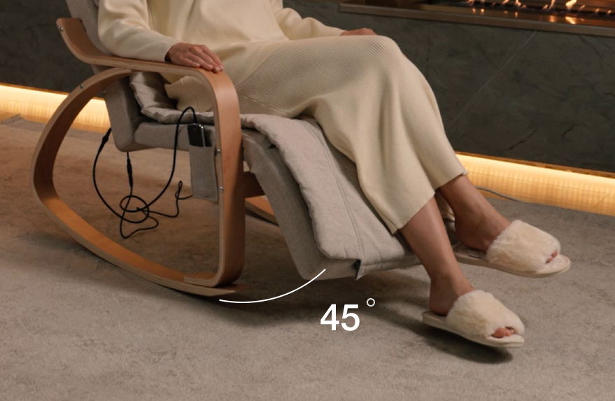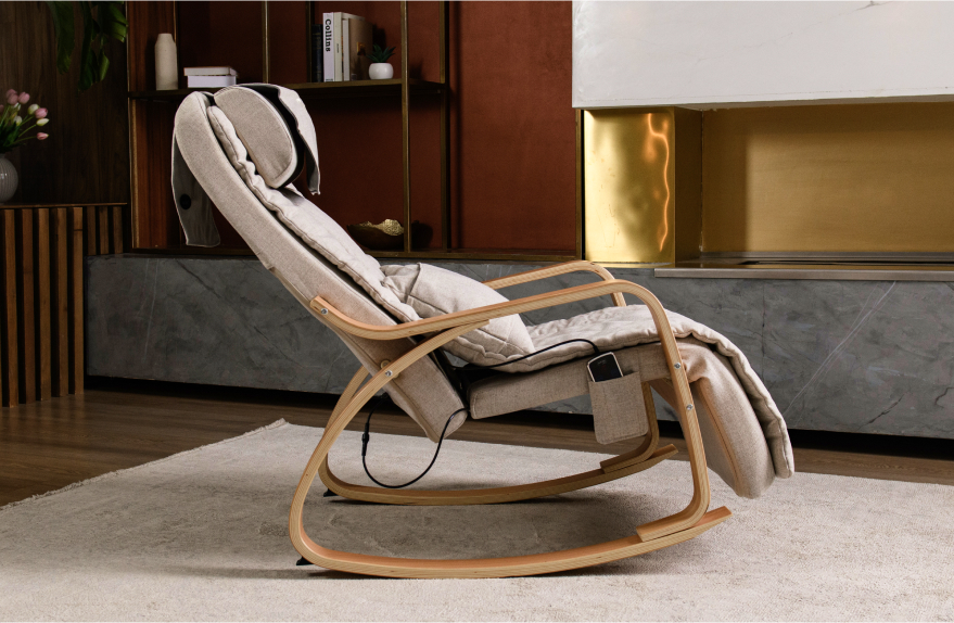 The chair has 12 massage rollers in the back area and 4 rollers in the neck area, which provide a thorough massage from the neck-collar area to the buttocks. The soft and smooth rocking of the chair helps to relax and take your mind off the hustle and bustle.